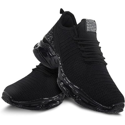 Women Slip On Rhinestone Sneaker Chunky Fashion Platform Sparkly Elastic Walking Shoes