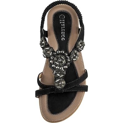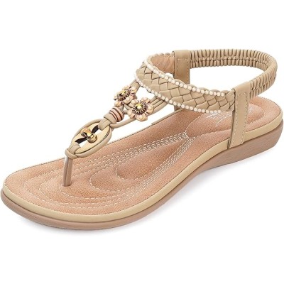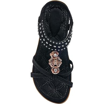 Womens Sandals Shoes Comfort Walking with Non Slip on Casual Summer Beach Shoes Dress Ankle Elastic Jeweled Bohemian Flats