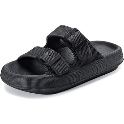 Women and Men - Pillow Slippers - Double Buckle Adjustable Slides - EVA Flat Sandals